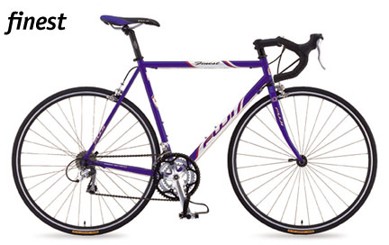Just like it’s brethren, the Finest offers a smooth shifting 24-speed Sora drivetrain with a TruVativ Touro aluminum crank with aluminum outer chainrings, double wall aluminum rims with CNC sidewalls. Where it differs is the light weight, responsive Elios 2 butted Cro-Moly frame for one "finest" riding bike.