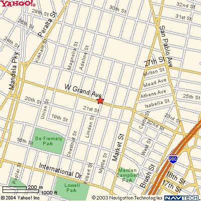 Drive a few blocks on W. GRAND AVE we are on the left side (Crosstreet is LINDEN ST)